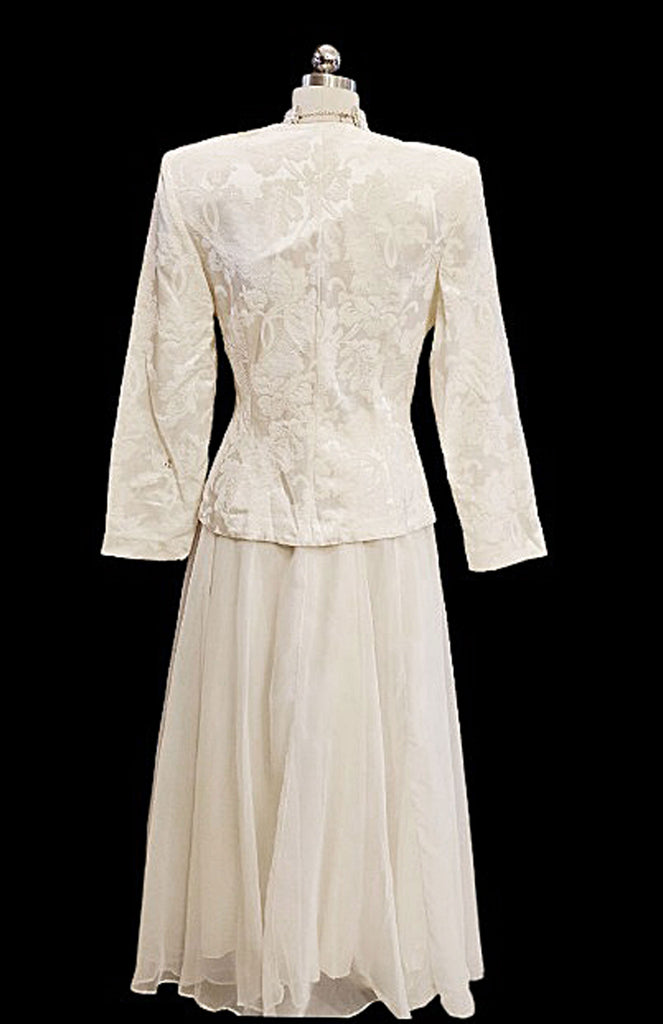 80S NAH NAH COLLECTION 2-PIECE EVENING OUTFIT - IVORY BROCADE PEARL BEADED JACKET FLOOR LENGTH SKIRT