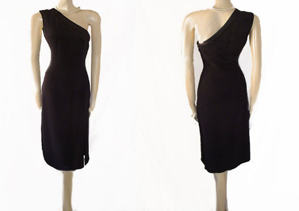 ARMANI COLLEZIONI ITALY BLACK SILK GODDESS DRESS - ONE SHOULDER COCKTAIL EVENING GOWN SIZE 6